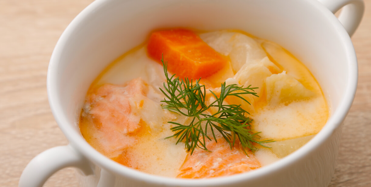 フィンランドの家庭料理の定番であるロヒケイットは、それぞれの家庭でよく作られる、まさにお袋の味。口に運ぶと薄い甘みと塩味による絶妙なバランスとクリーミーなテーストとすっきりした食感が絶好な旨さを作り出す。