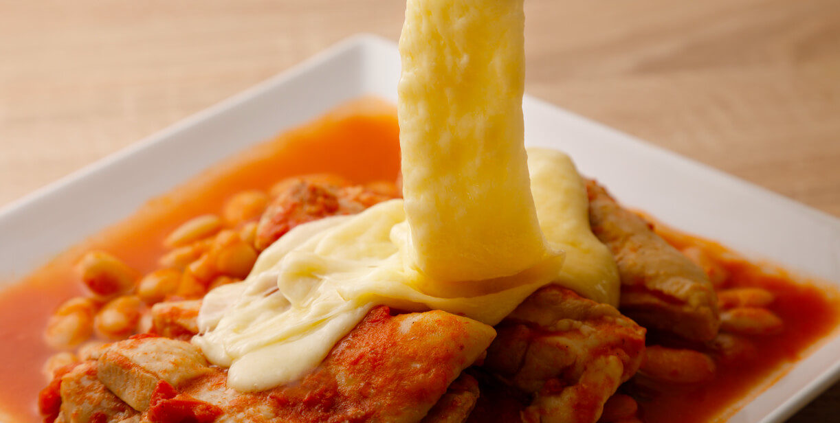 世界三大料理のトルコ料理の中でも伝統的な白いんげん豆と完熟トマトの煮込み料理にラクレットチーズの濃厚な味わいが絡む絶品。